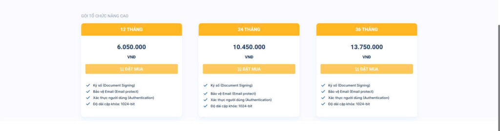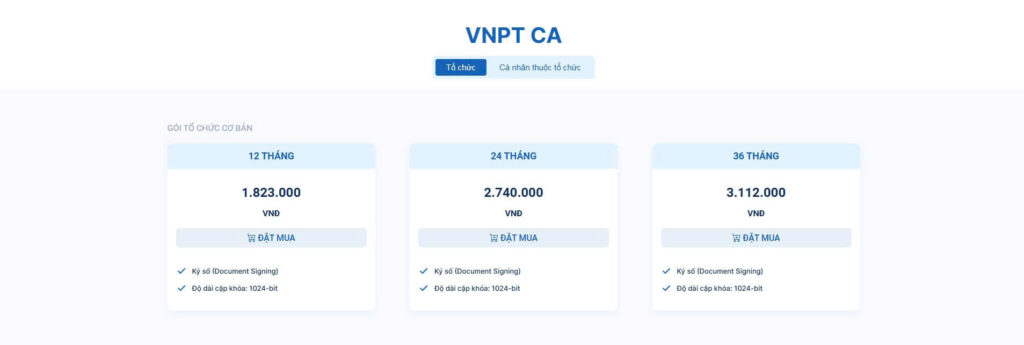 Bảng giá chứng thư sốVNPT-CA trân trọng thông báo với Quý Khách hàng bảng giá Chứng thư số Doanh nghiệp như sau: